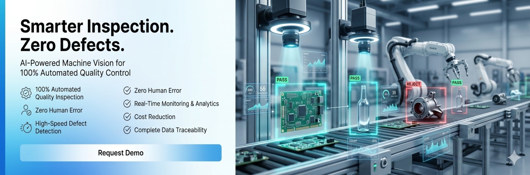 Sensam’s Machine Vision Solutions enable automatic inspection and quality control across all environments. Using advanced imaging, optics, and intelligent processing, our systems deliver precise, consistent, and real-time inspection